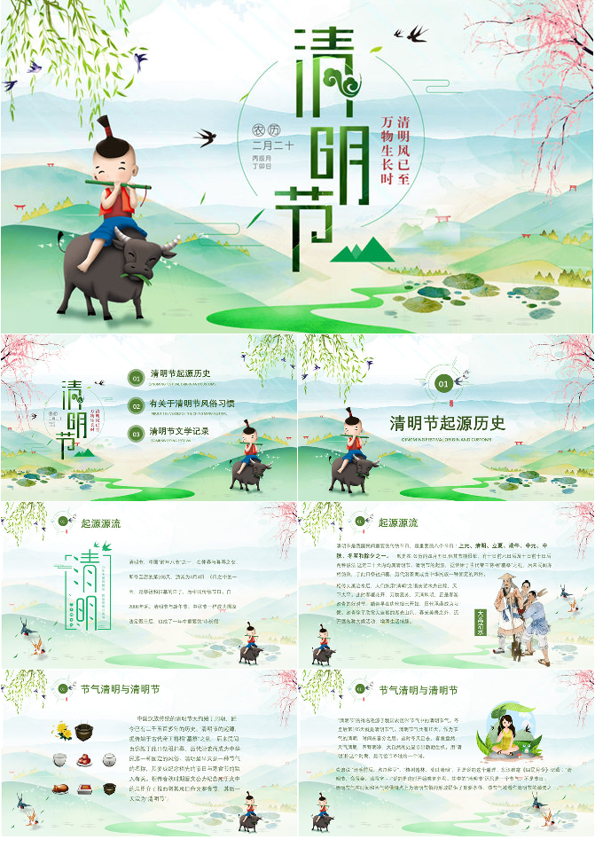 牧童清明节习俗介绍PPT模板