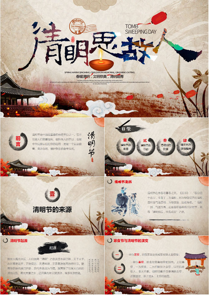 简约古典大气清明节PPT模板