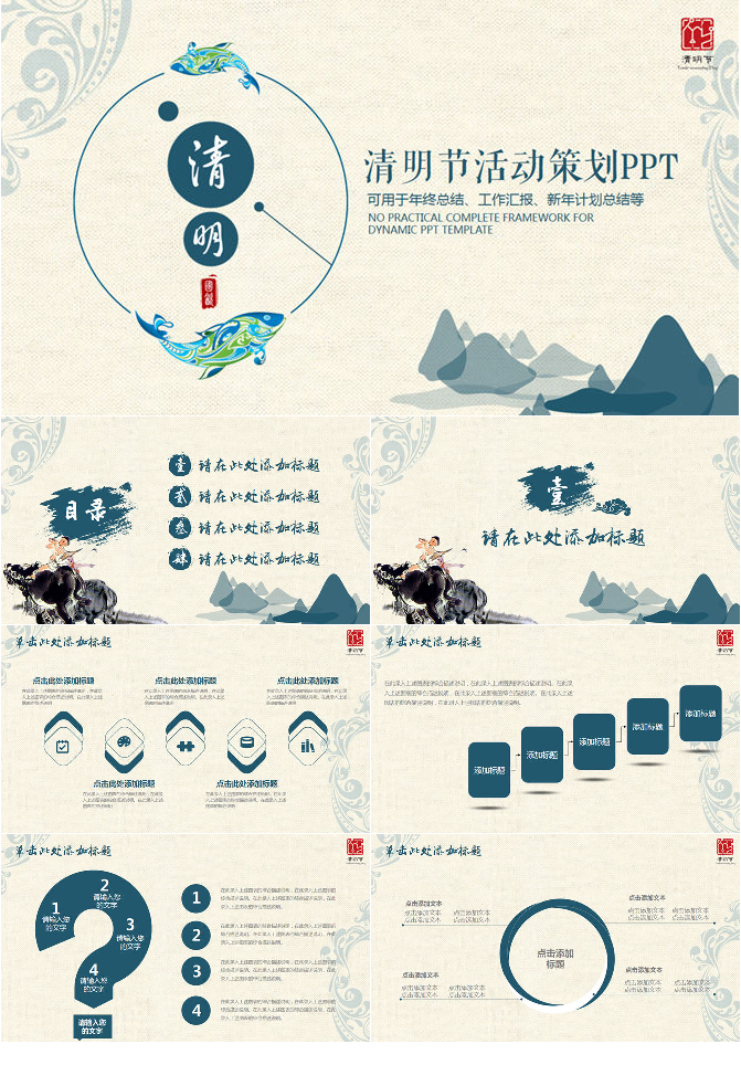 古风清明佳节幻灯片模板下载
