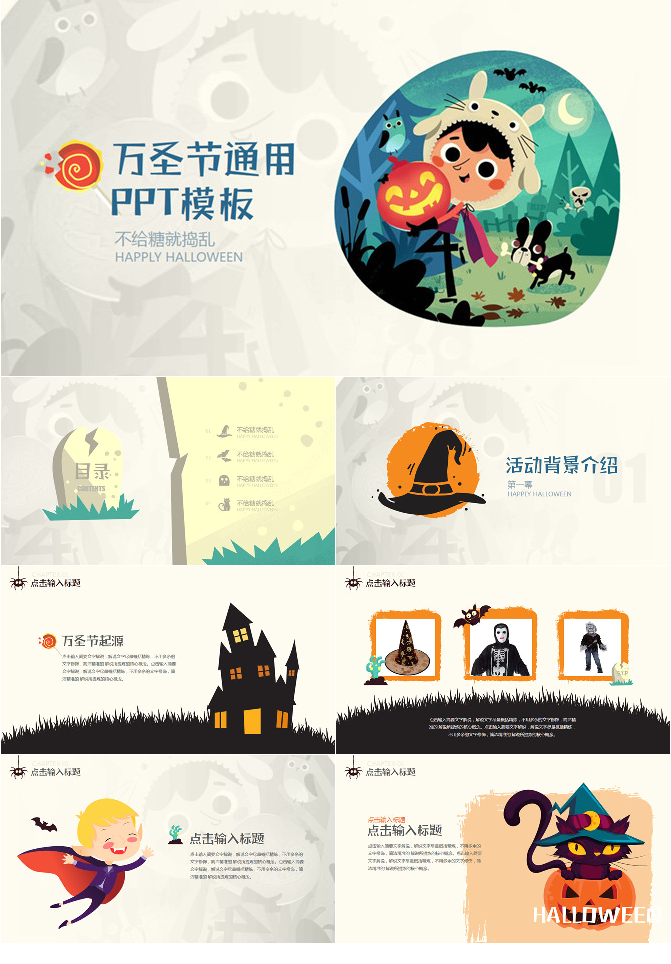 可爱卡通万圣节介绍PPT模板