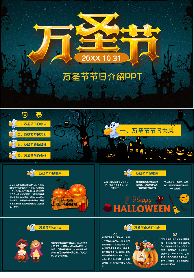 万圣节介绍PPT模板下载