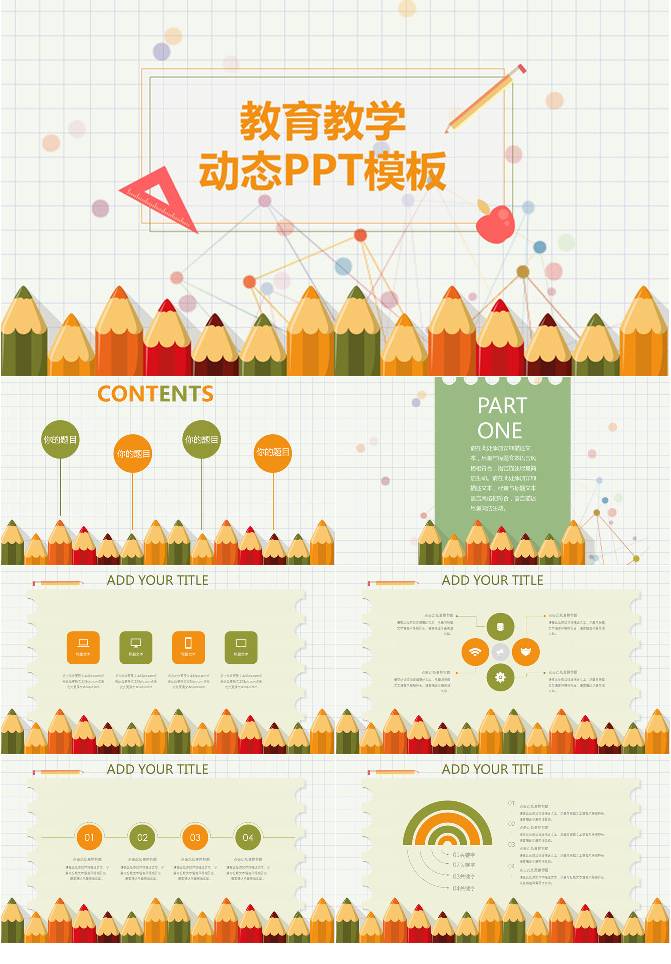 可爱铅笔幼儿教学课件PPT模板