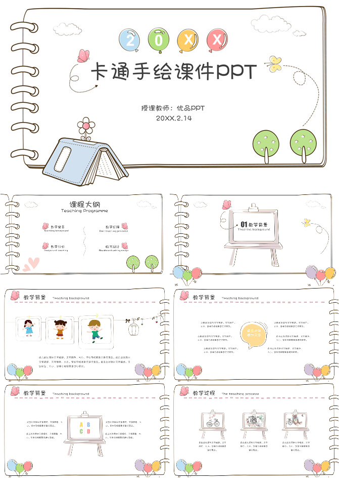 卡通笔记本手绘风PPT模板