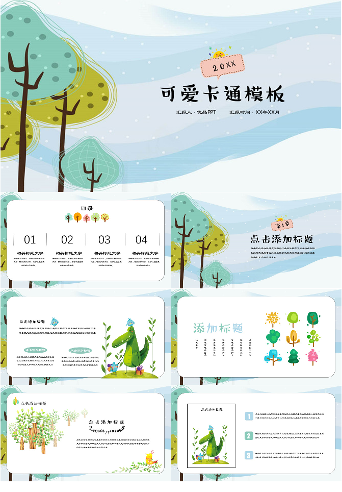 可爱卡通树林小树PPT模板