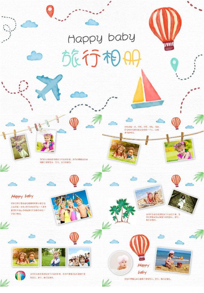 卡通儿童旅行电子相册PPT模板