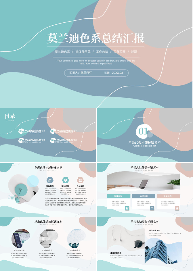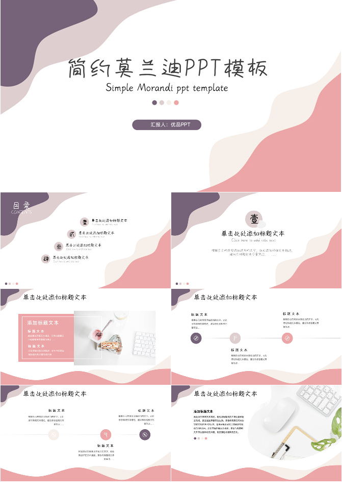 简洁动感暖色调莫兰迪色PPT模板