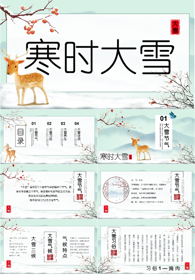 小鹿大雪节气介绍PPT模板