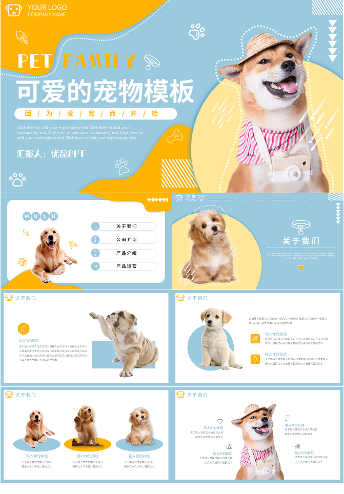 可爱猫狗宠物PPT模板