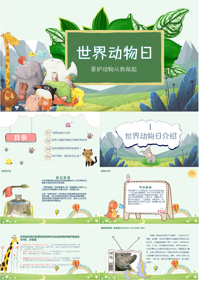 卡通世界动物日介绍PPT模板