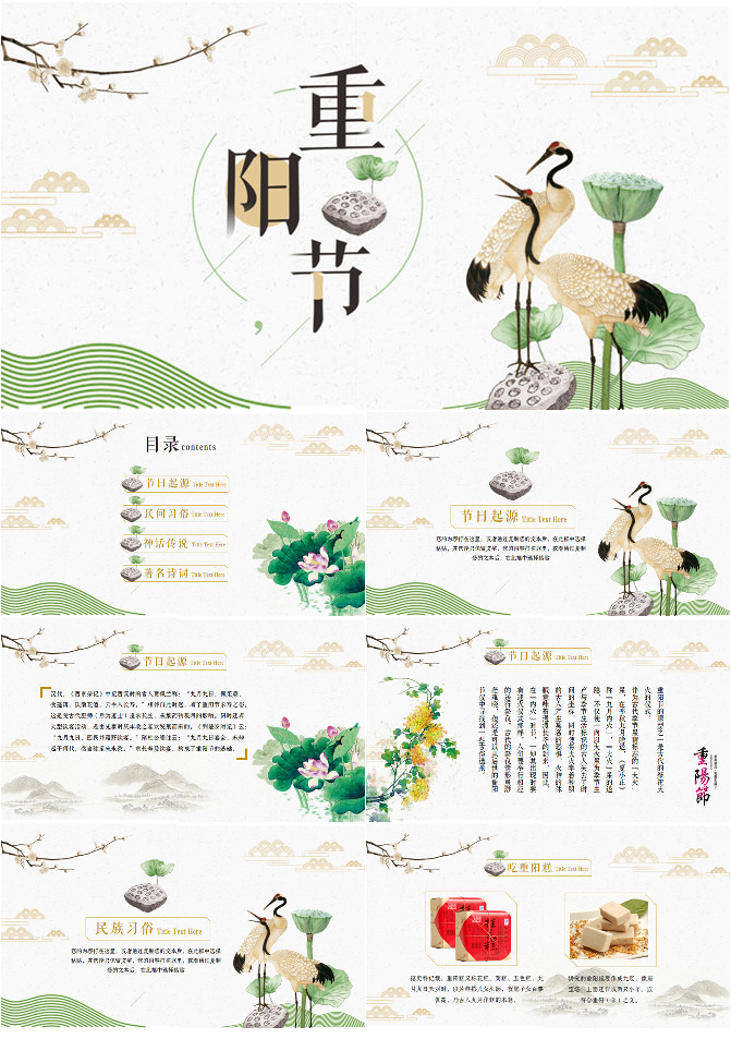 仙鹤荷花中国风重阳节PPT模板