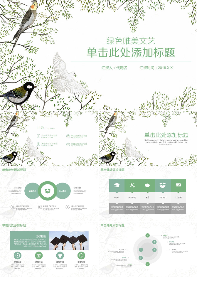 清新文艺范小鸟PPT模板