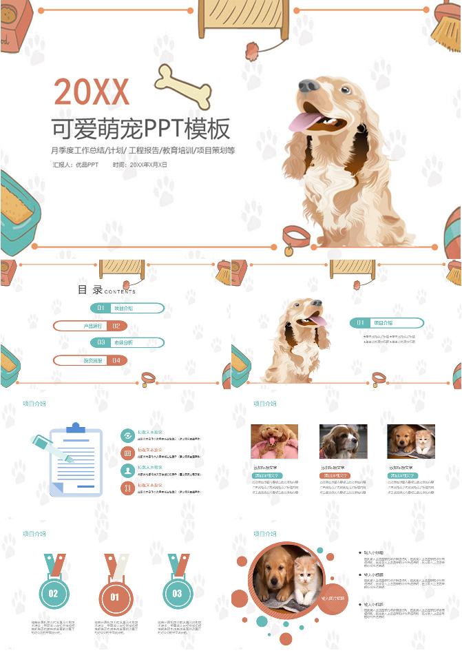 宠物狗狗可爱萌宠PPT模板