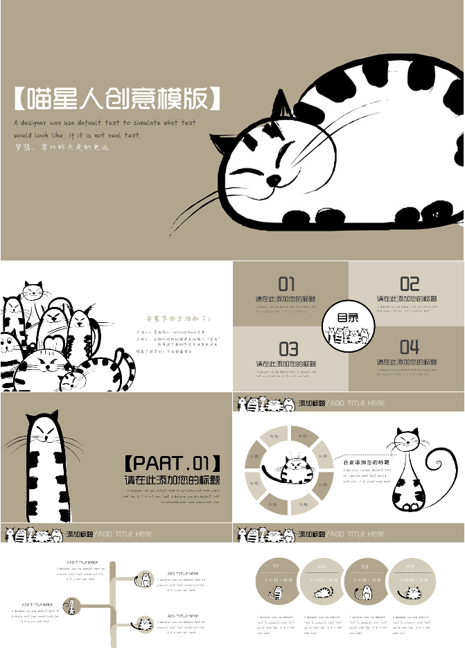 可爱猫咪小猫喵星人PPT模板