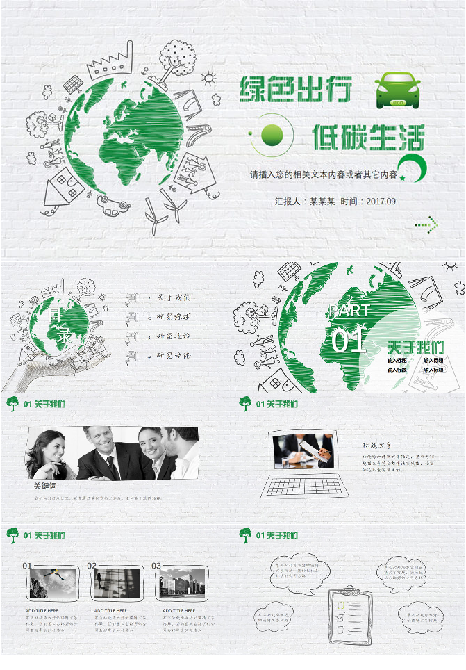 绿色出行低碳生活PPT模板