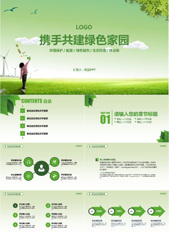创建绿色宜居家园PPT模板