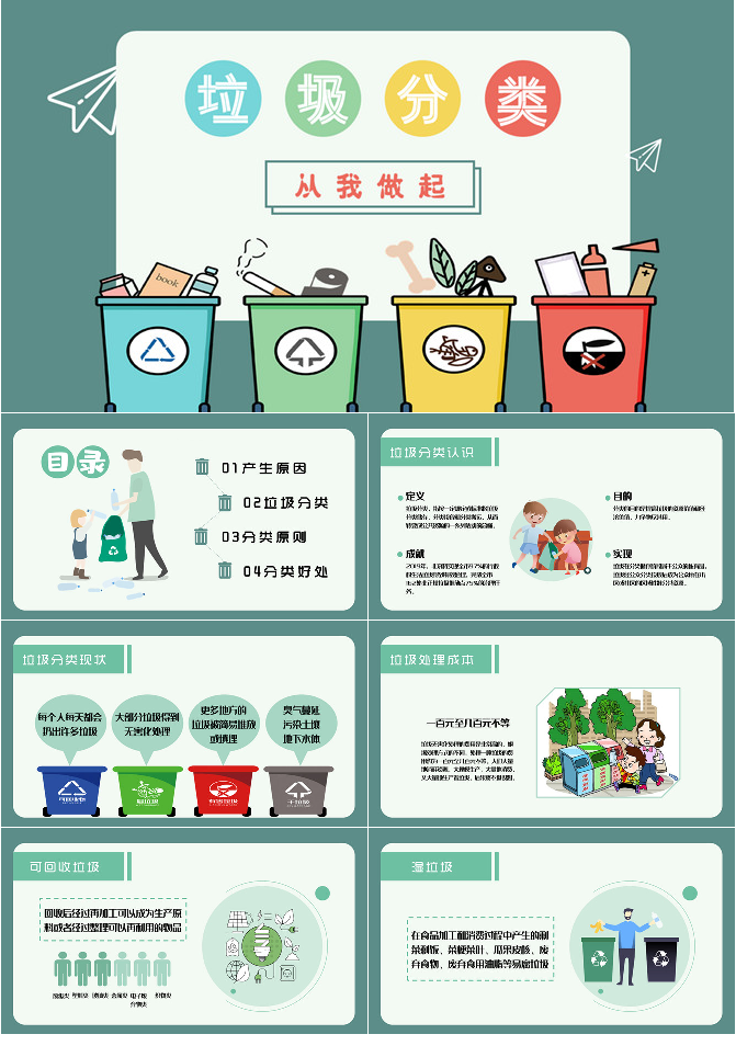 卡通垃圾分类教育宣传PPT模板