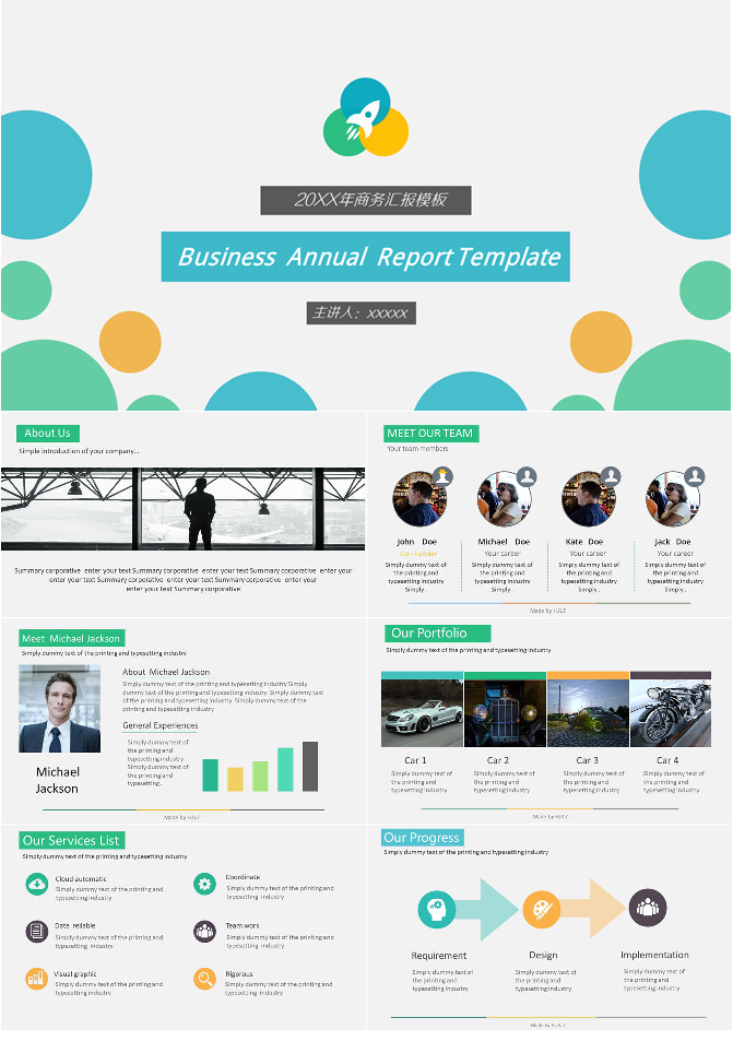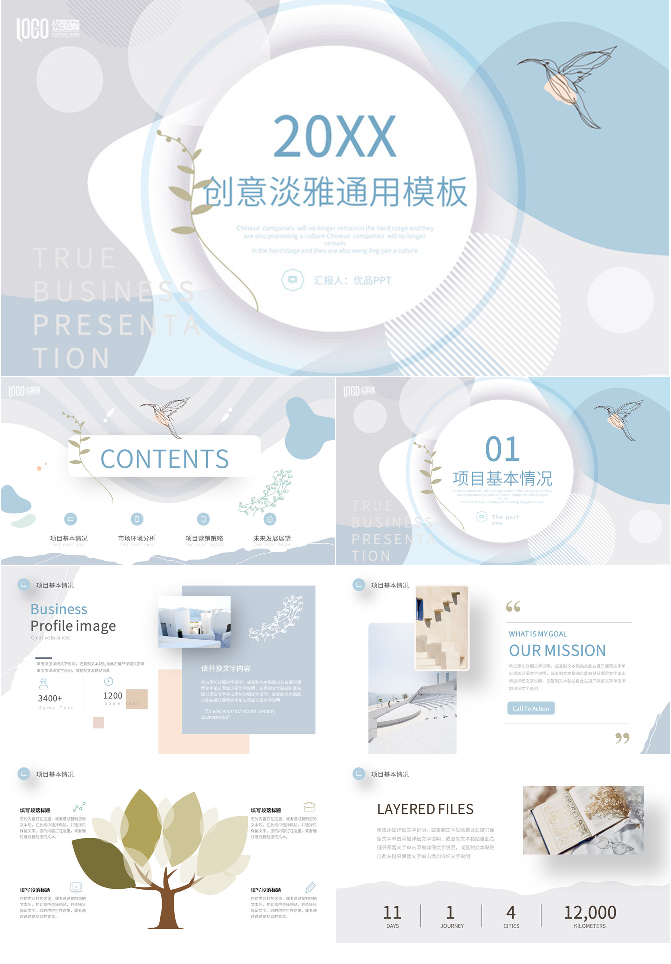 小清新扁平化动态通用PPT模板