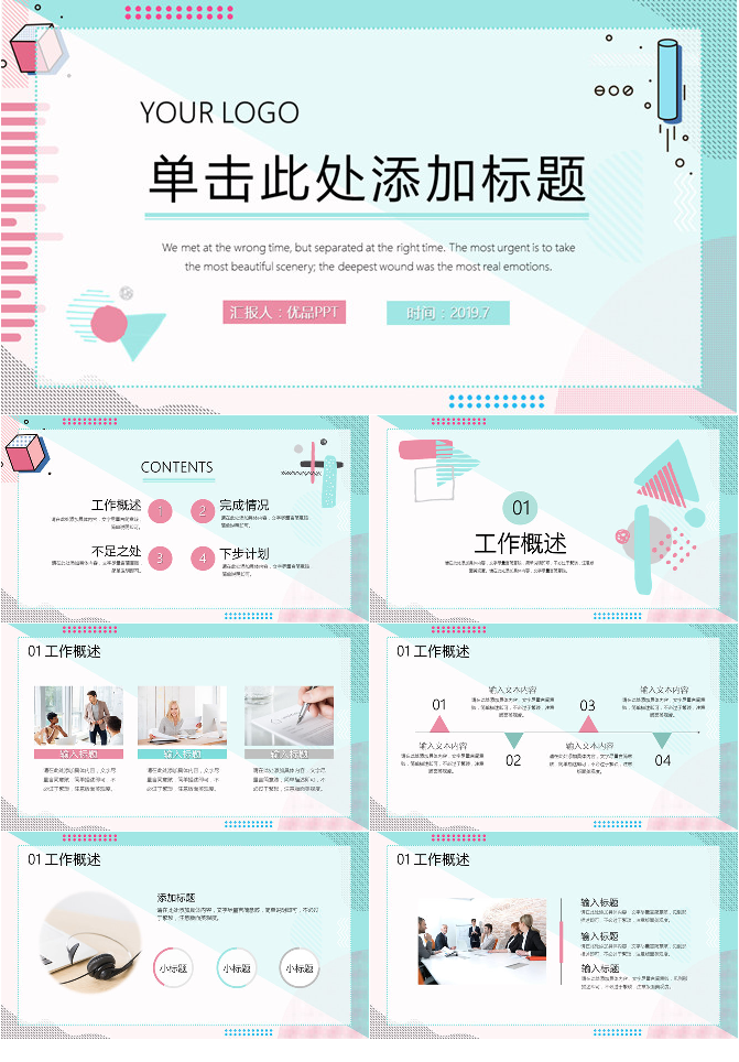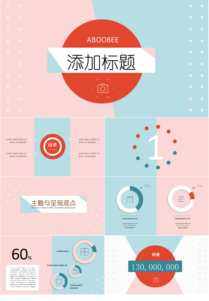 清新蓝粉时尚通用PPT模板
