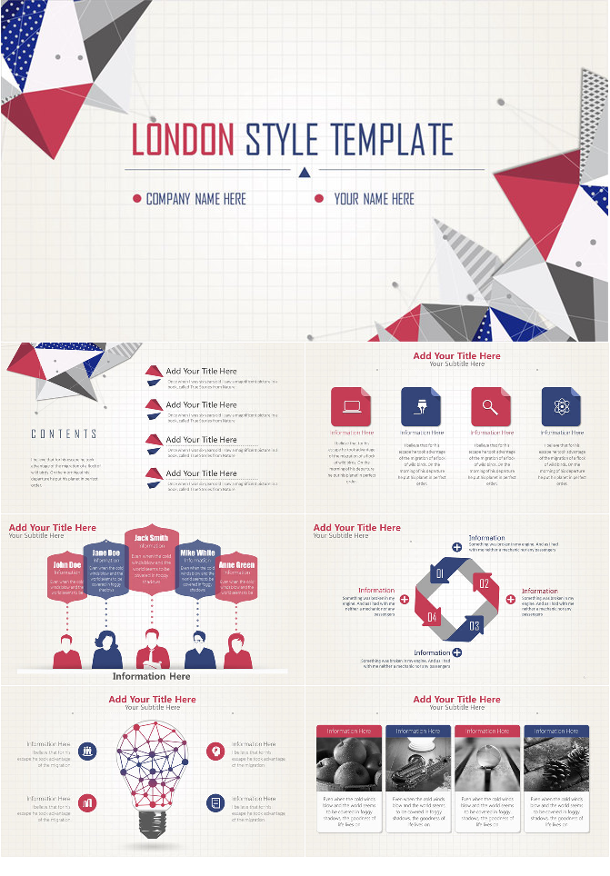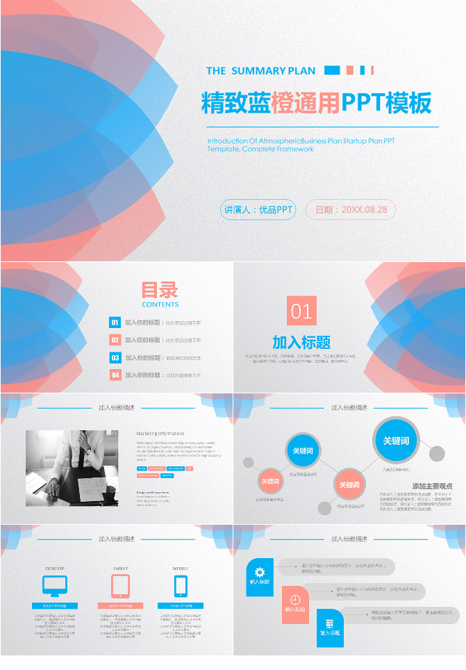 时尚蓝红简约通用PPT模板