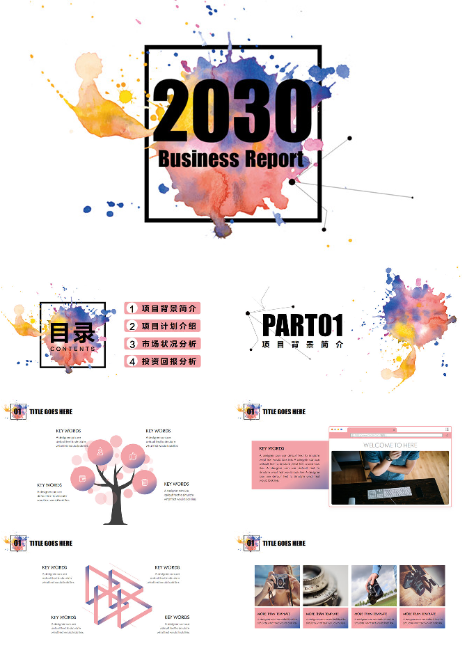 水彩墨迹艺术设计PPT模板