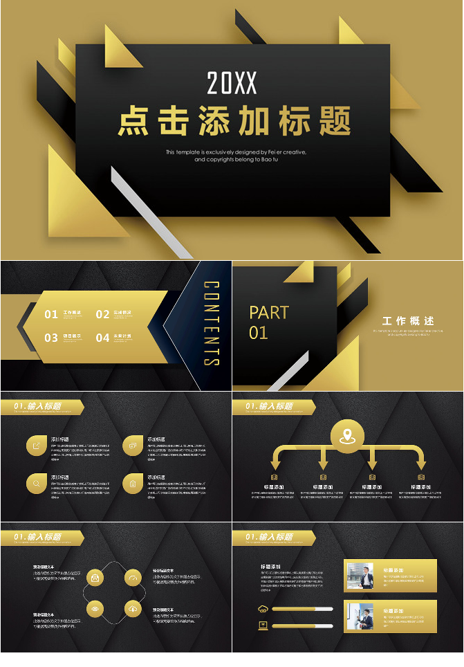 质感黑金立体几何PPT模板