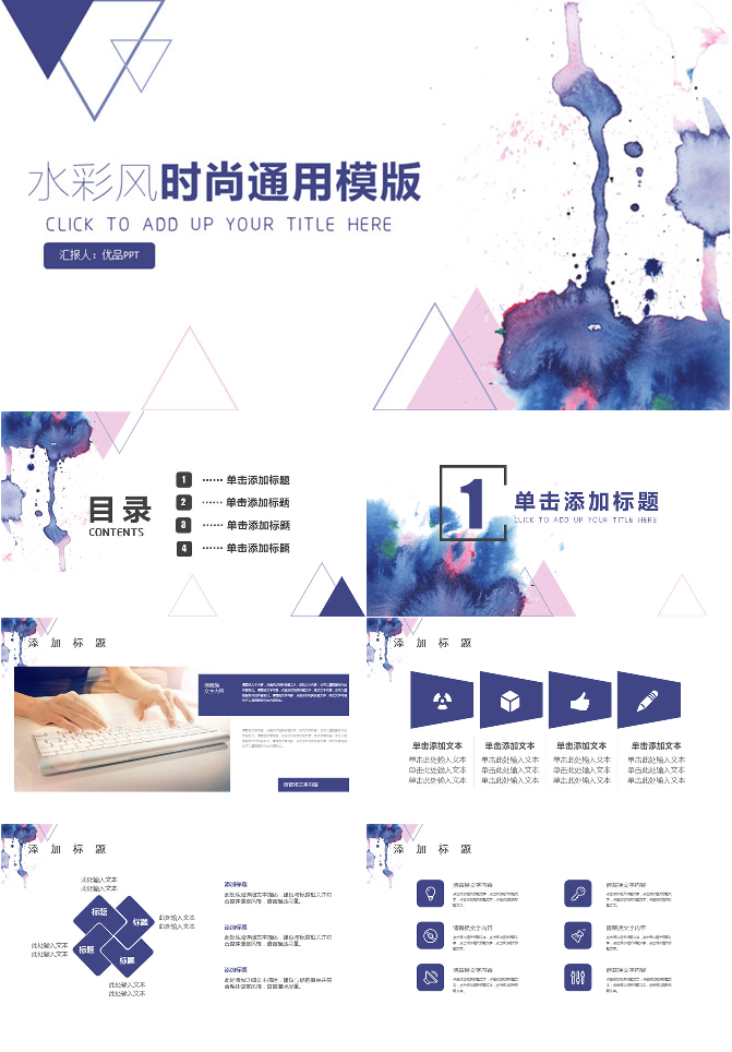 时尚通用水彩晕染墨迹PPT模板
