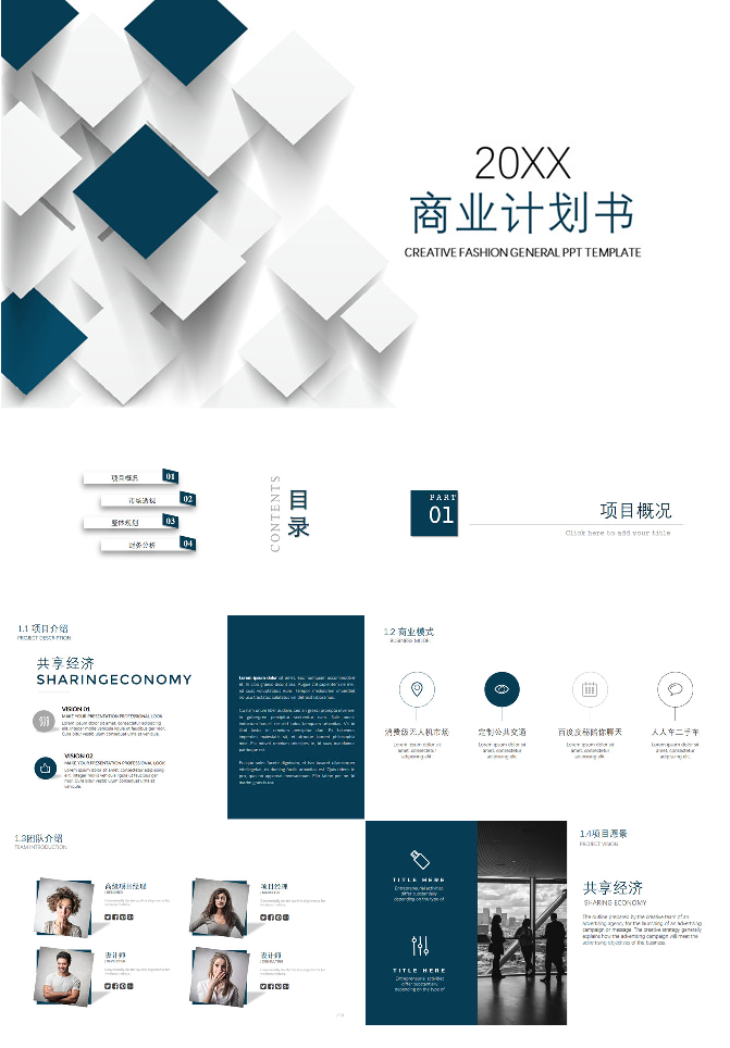 立体简约商业计划书PPT模板