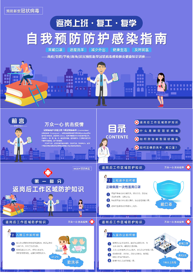 返岗复工新冠病毒预防PPT模板
