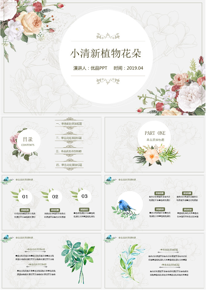 花朵文艺范小清新PPT模板