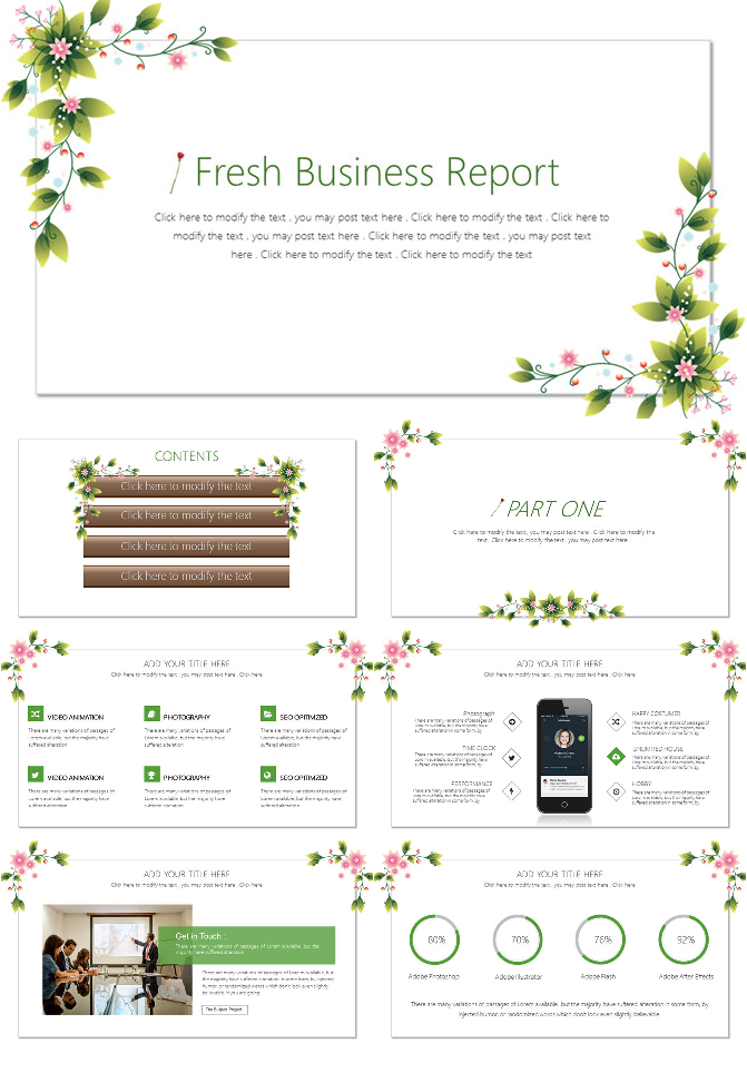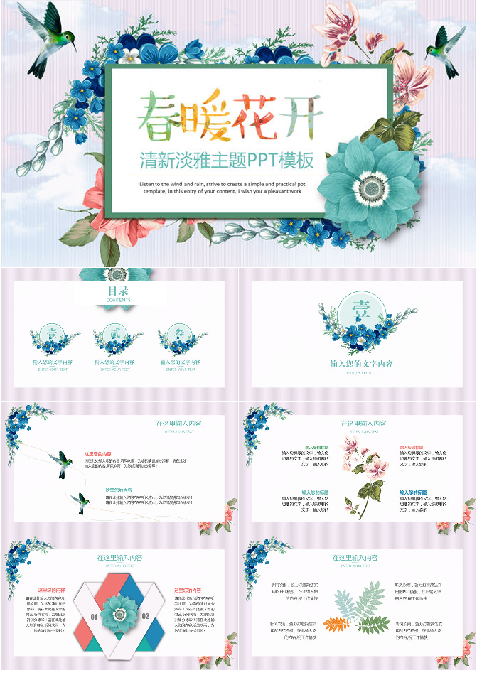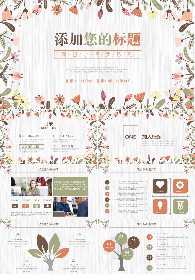 清新自然小花图文PPT模板