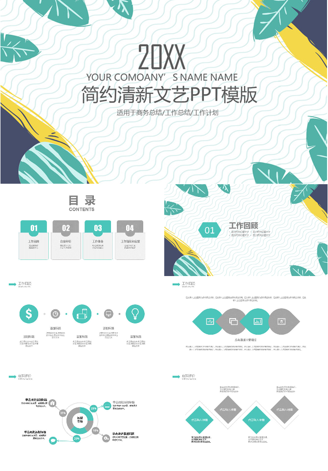 简约清新文艺范通用PPT模板