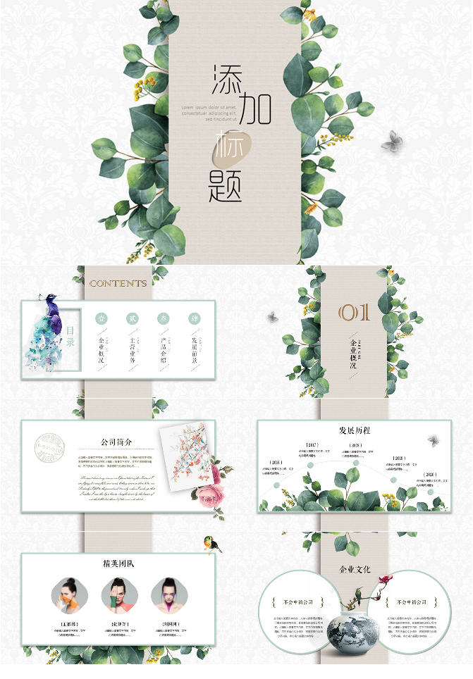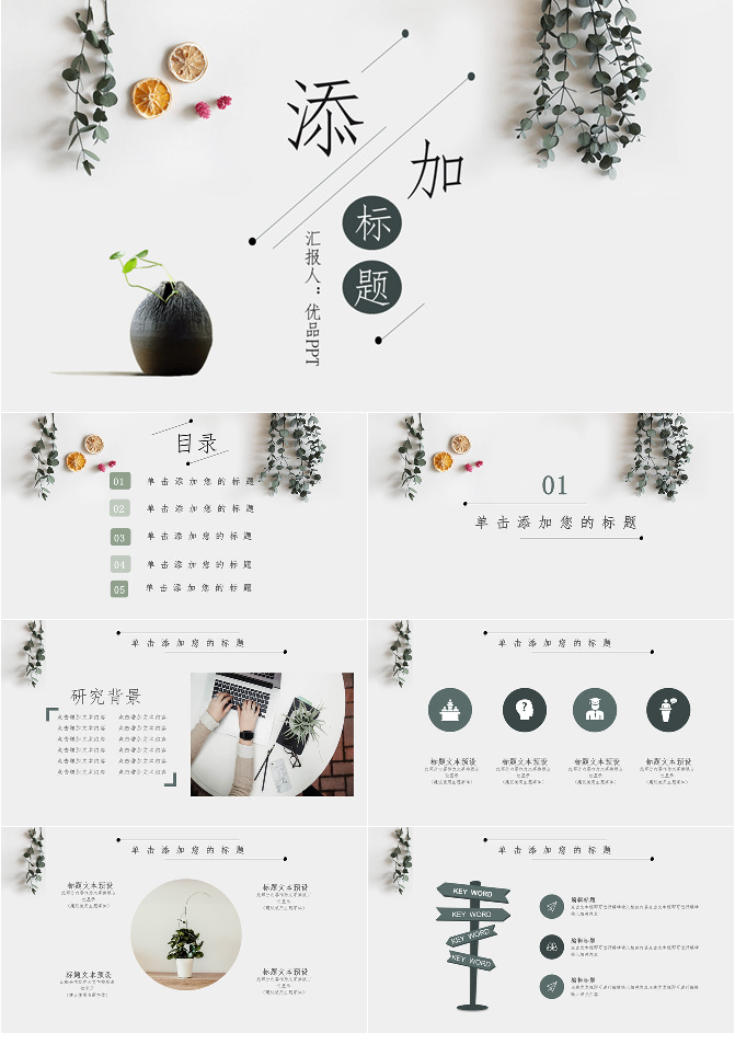 淡雅文艺自然小清新PPT模板