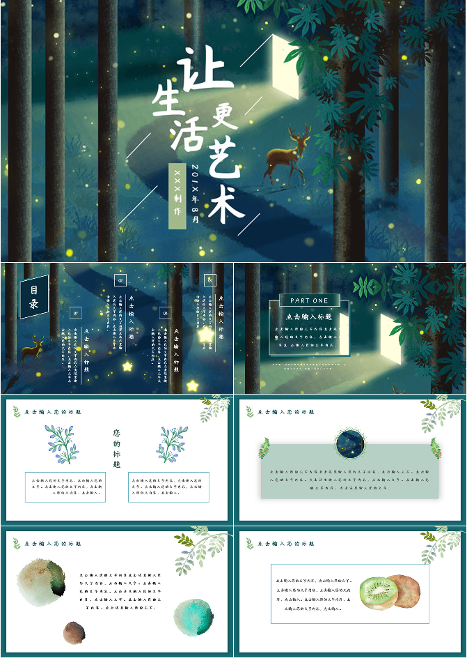 插画风唯美文艺森系PPT模板