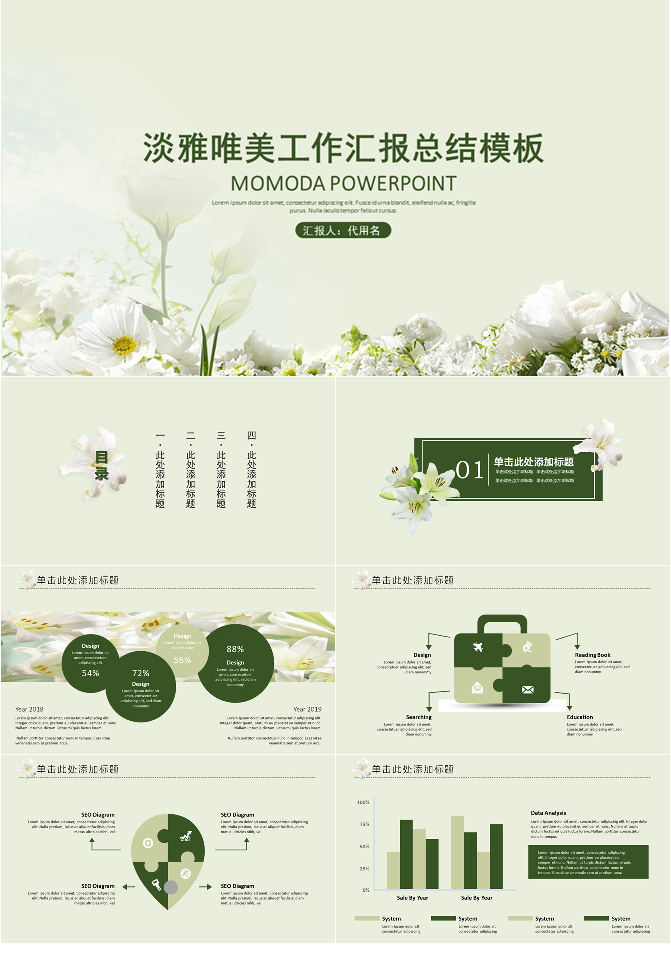 淡雅唯美工作总结汇报PPT模板