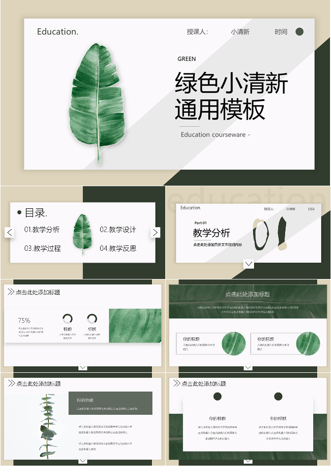 创意淡雅清新叶子PPT模板