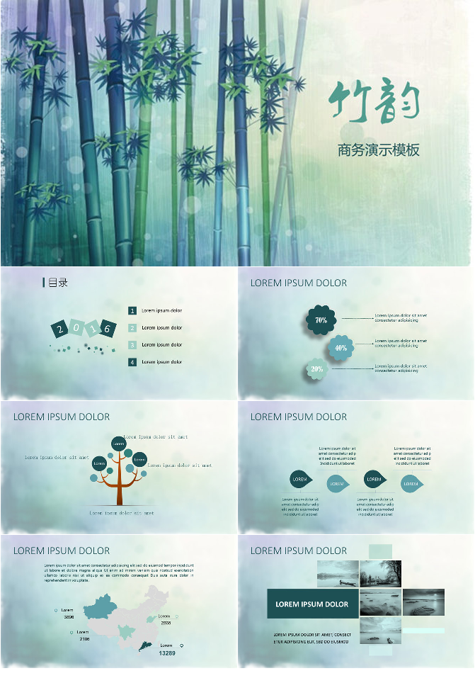 清新竹林竹子竹韵PPT模板