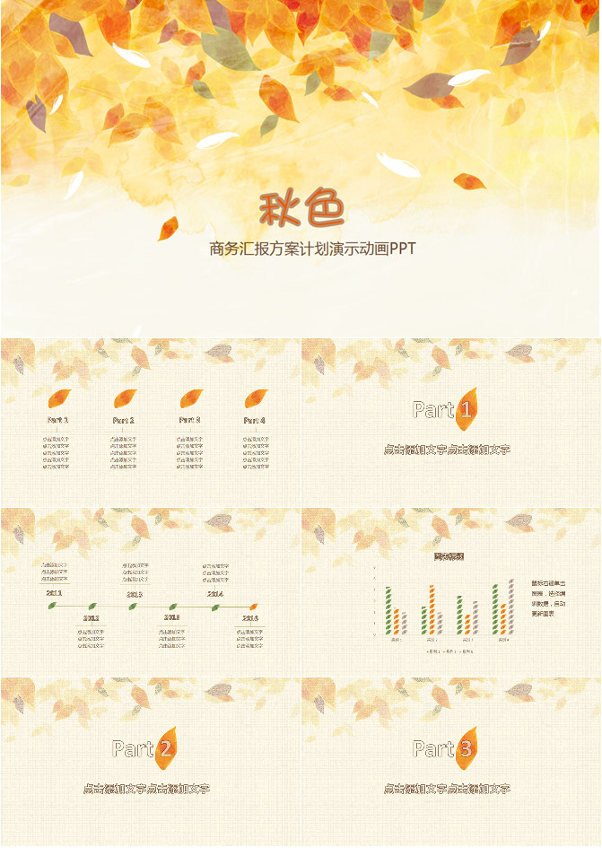 金秋红叶飘落PPT模板下载