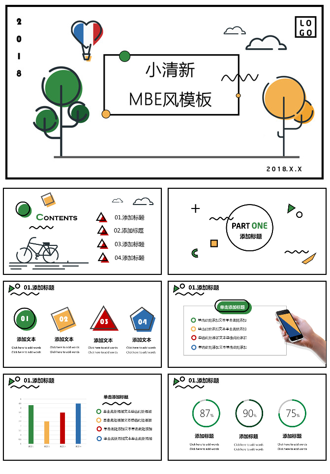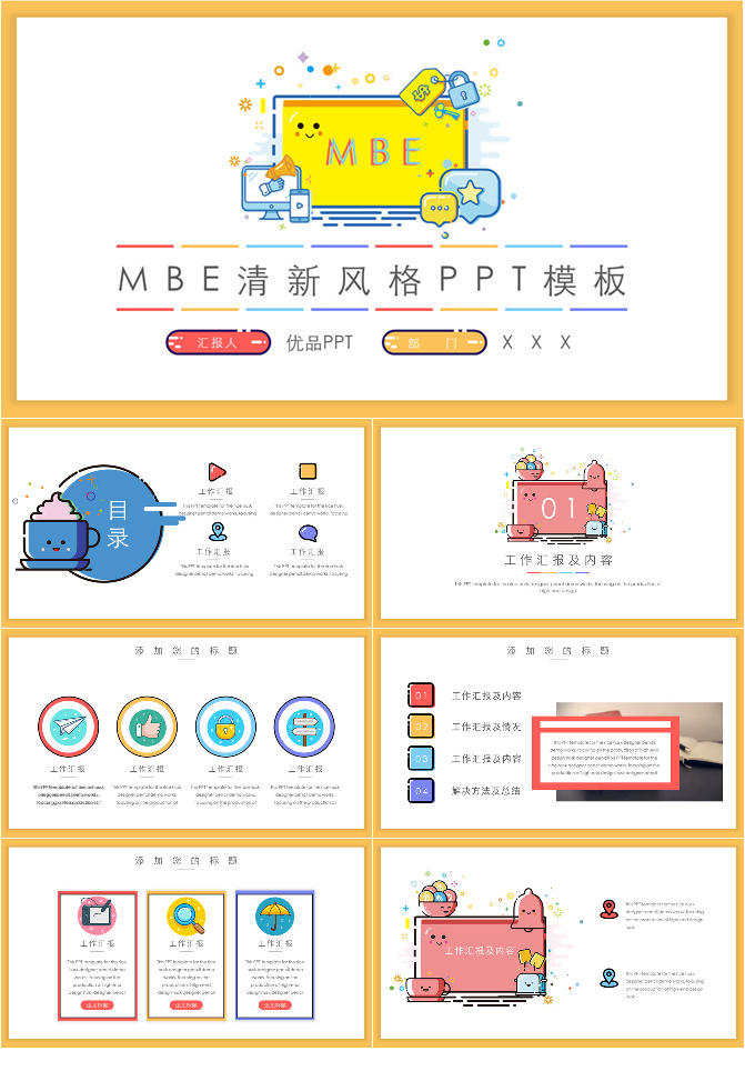 多彩小清新MBE风格PPT模板