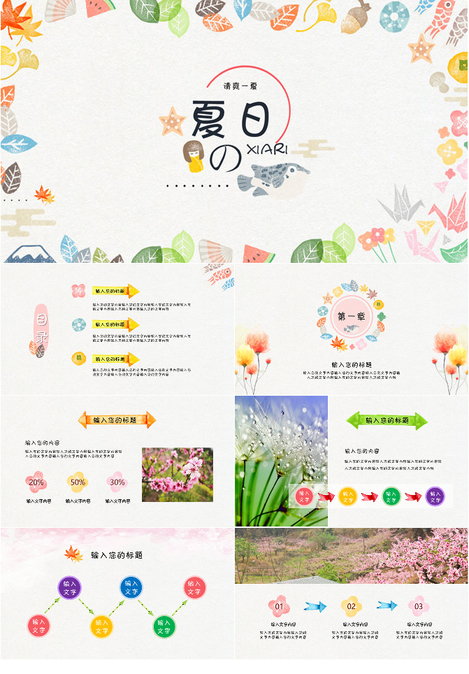 小清新简约彩色墨迹PPT模板