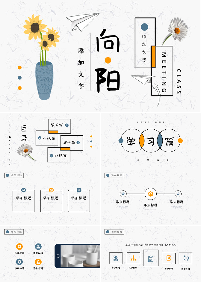 小清新纸飞机向日葵PPT模板