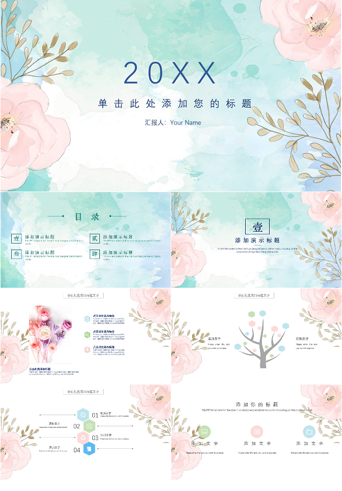小清新淡雅水彩花朵PPT模板