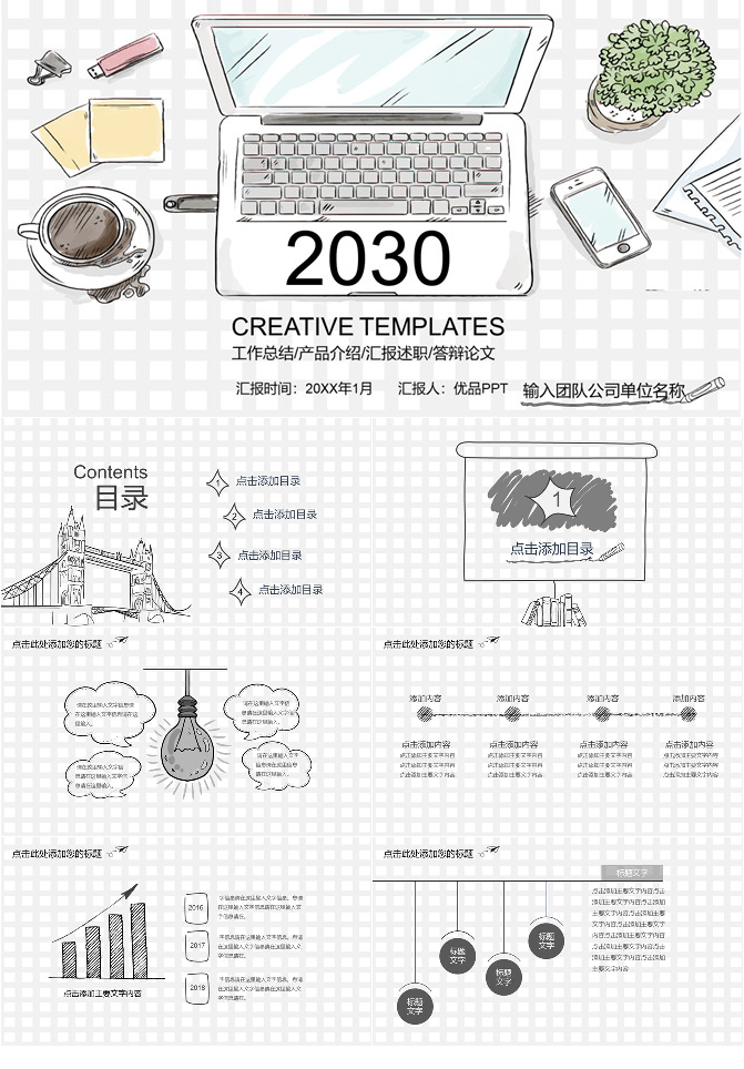 创意时尚手绘工作汇报PPT模板