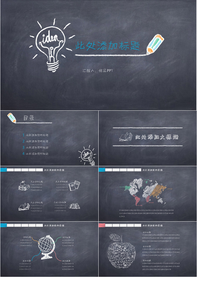 可爱创意黑板粉笔字PPT模板