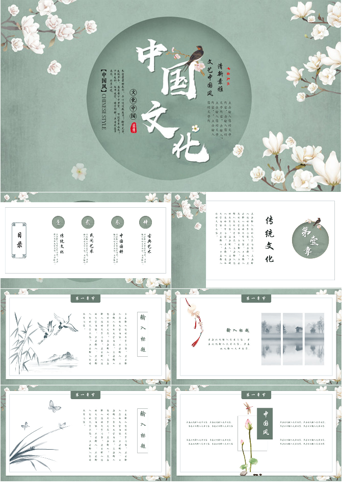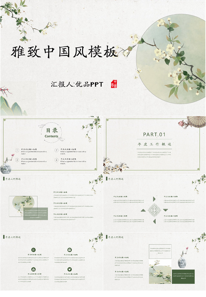 淡雅简洁中国风PPT模板