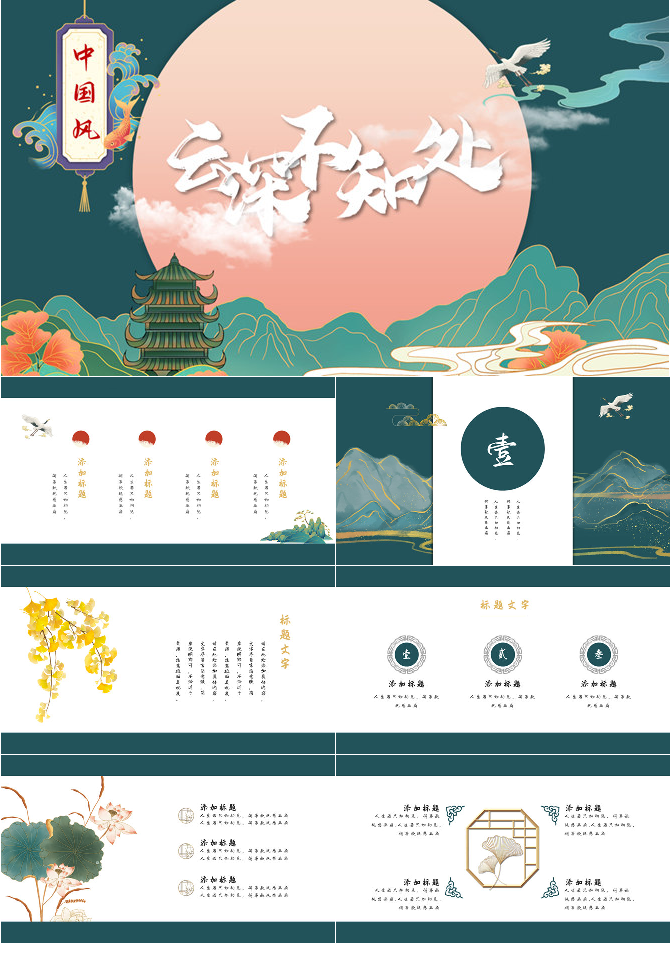 雅致远山群山国风意境PPT模板