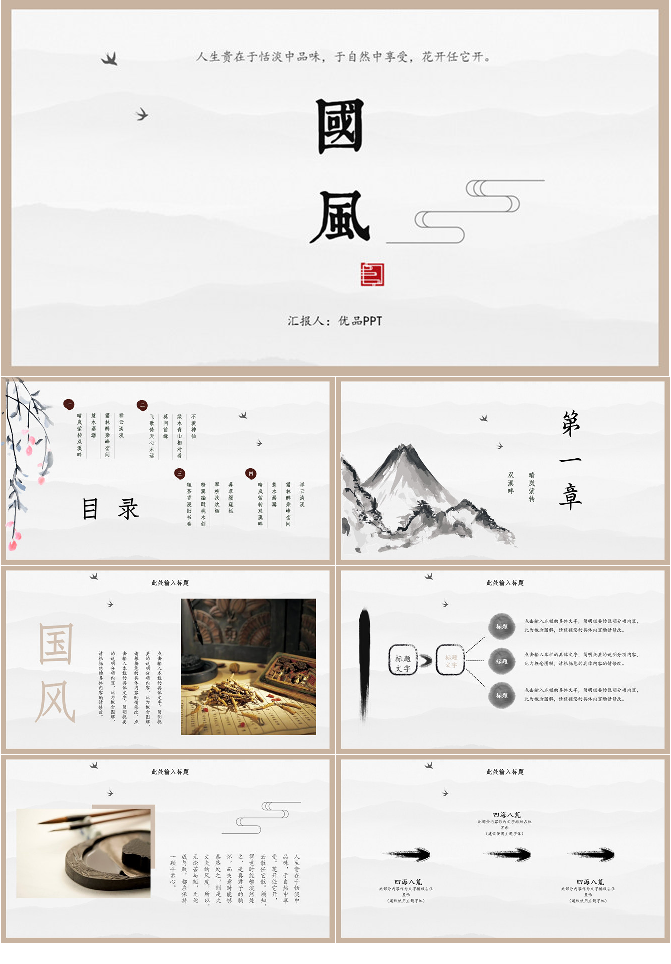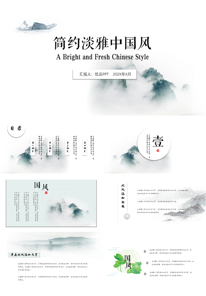 极简淡雅中国风PPT模板