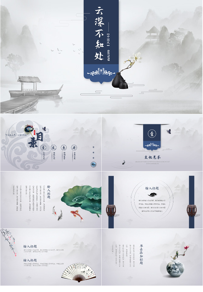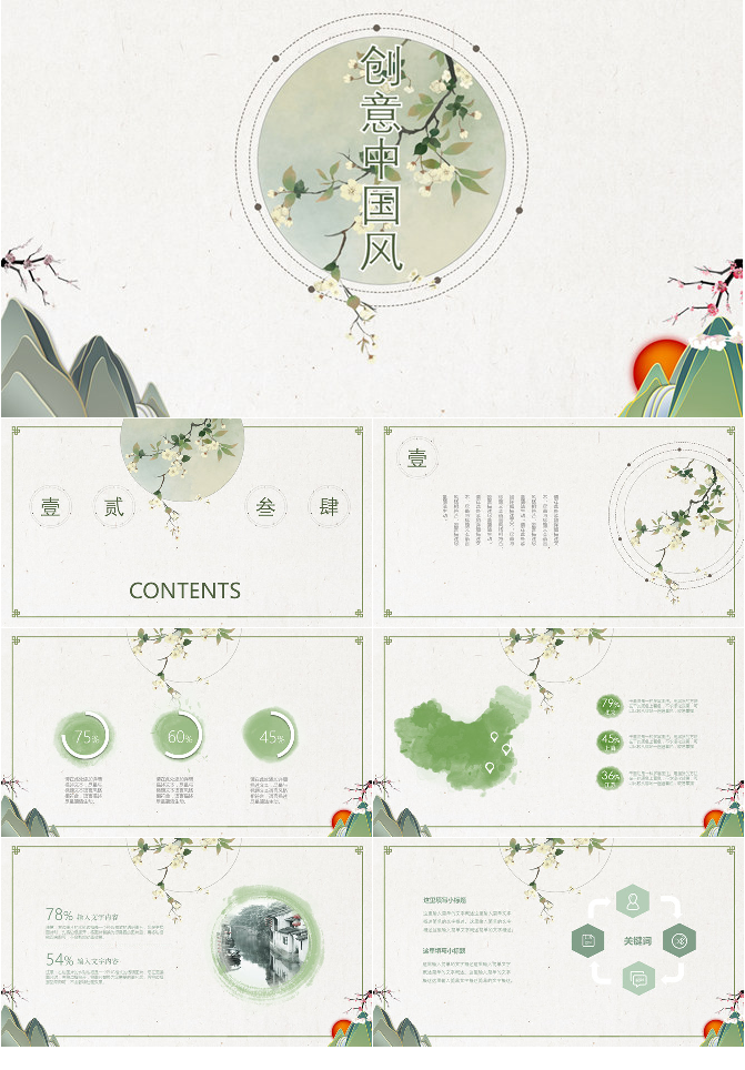 简约淡雅创意中国风PPT模板