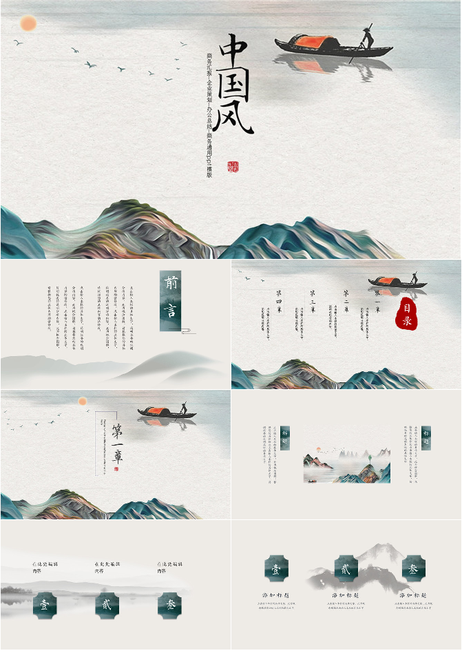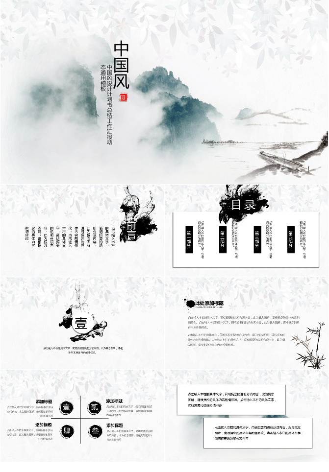 简洁大气水墨山水中国风PPT模板