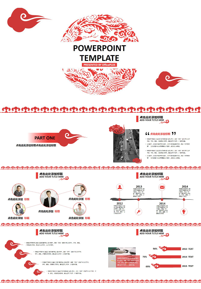 创意红色祥云中国风PPT模板