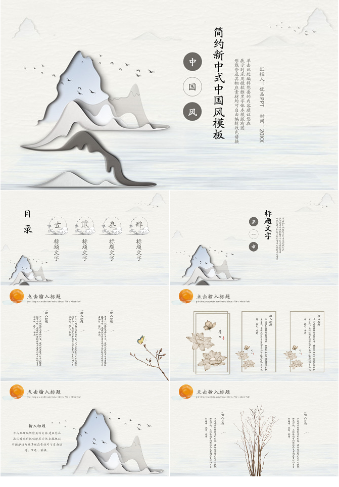 简约淡雅新中式中国风PPT模板